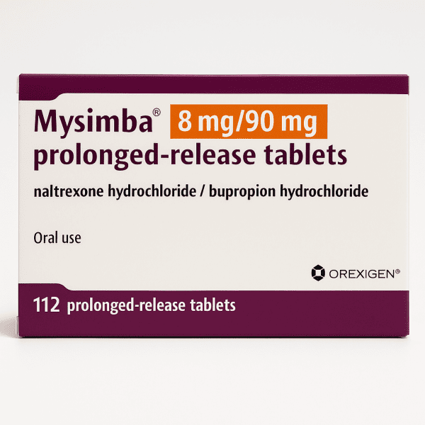 Mysimba is a weight loss medicine containing the two active ingredients, Naltrexone Hydrochloride and Bupropion Hydrochloride. Naltrexone Hydrochloride helps to curb food cravings while Bupropion Hydrochloride reduces appetite and increases energy consumption. Together, they signal the brain to control appetite and food cravings.